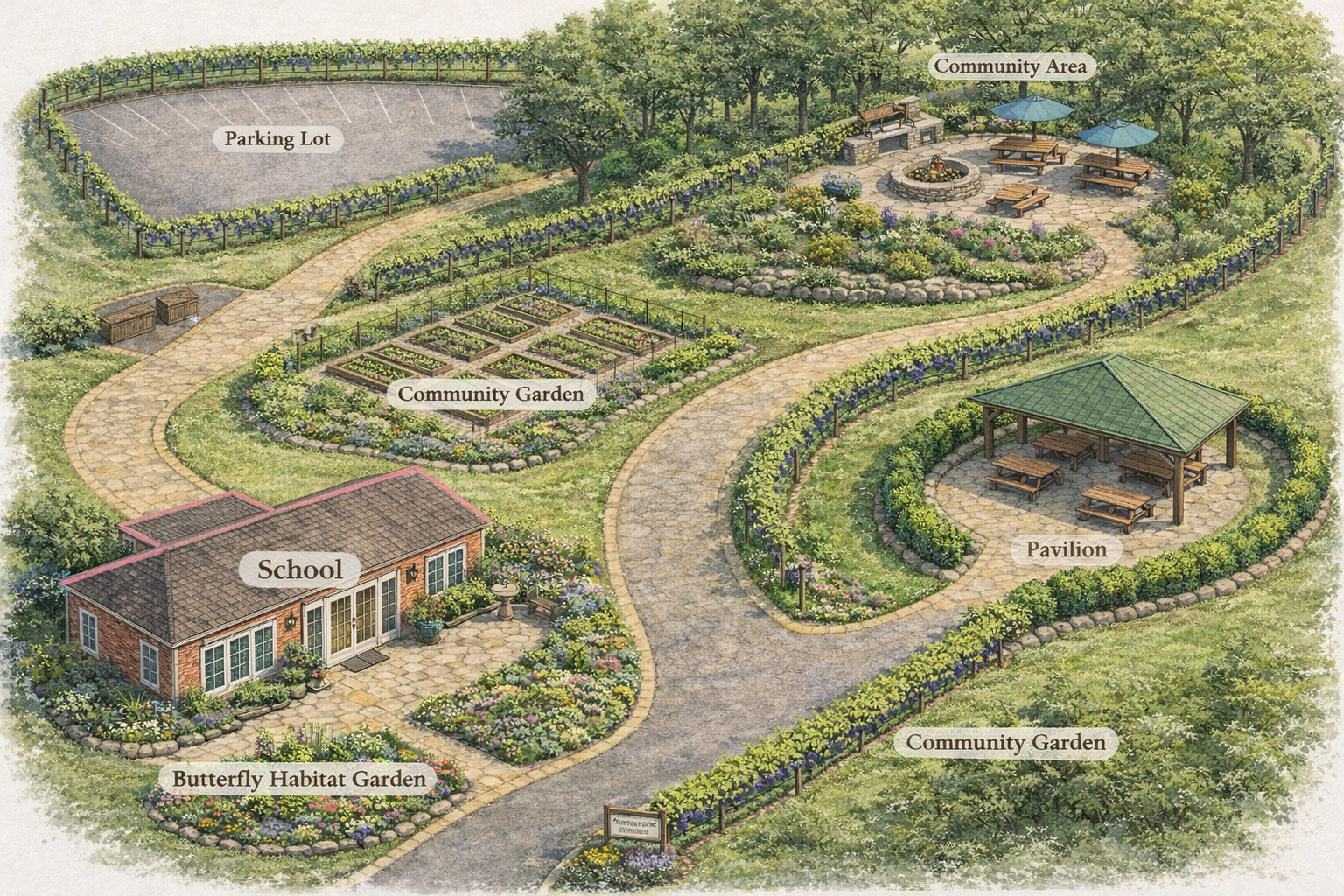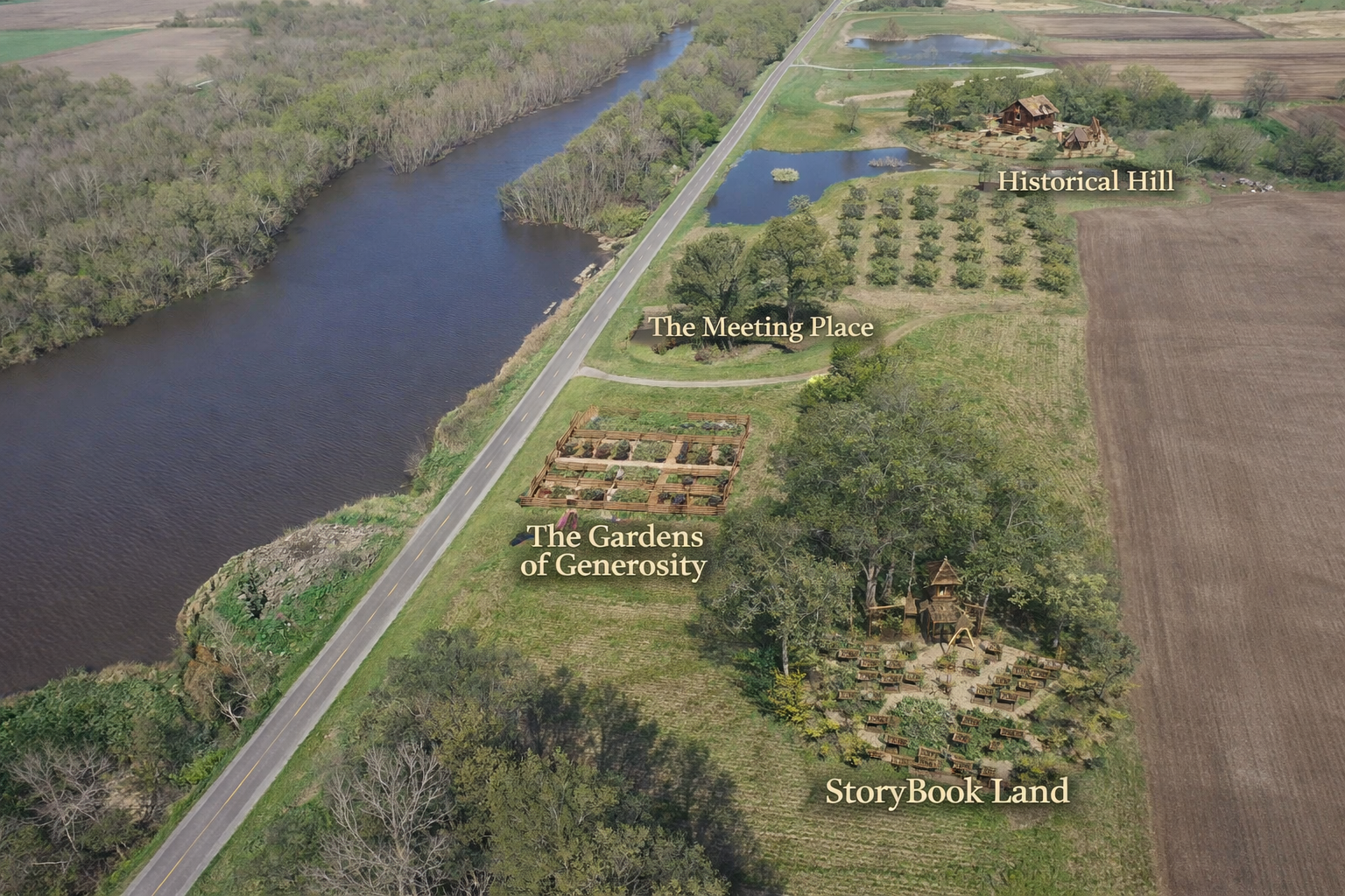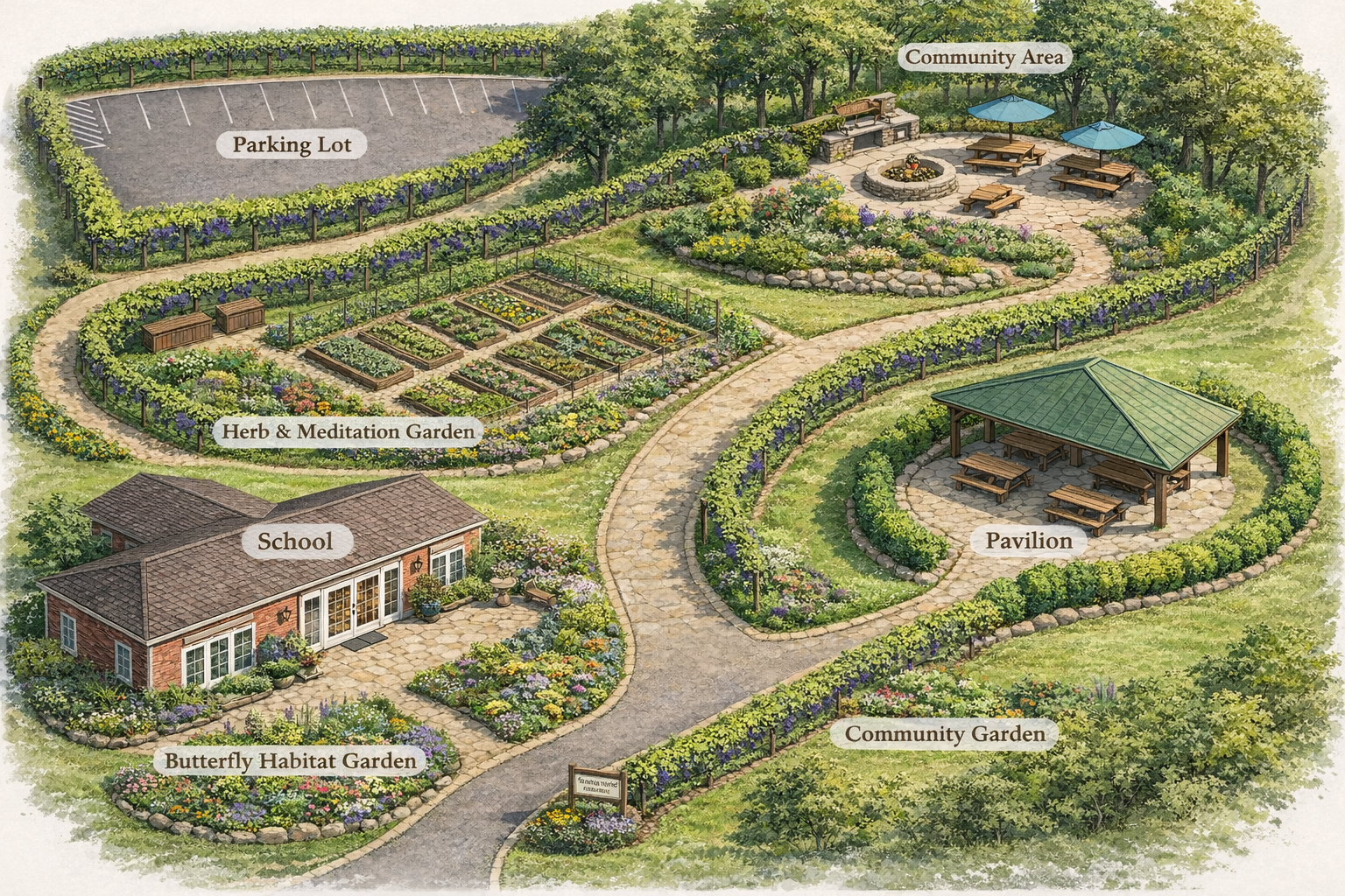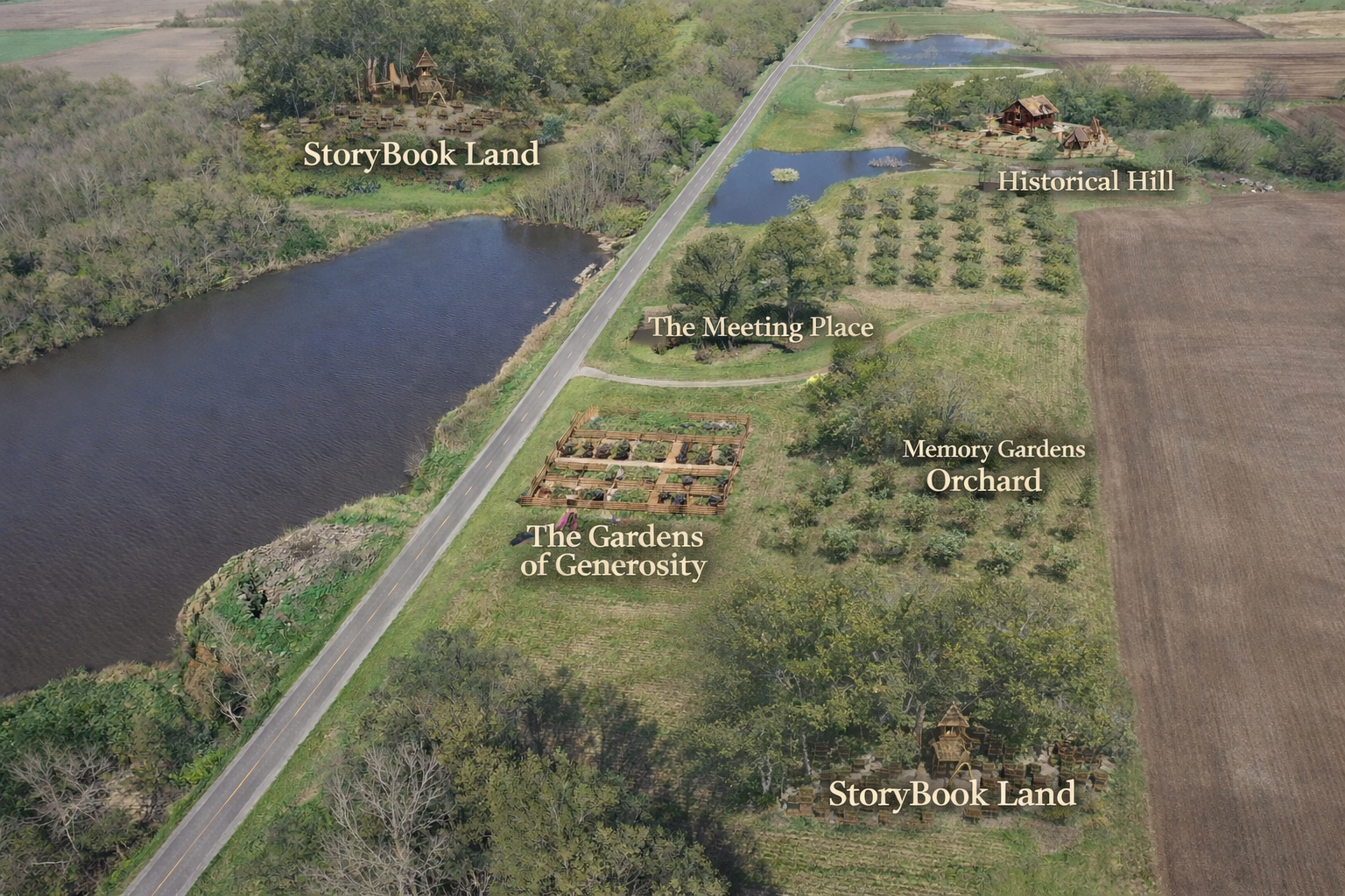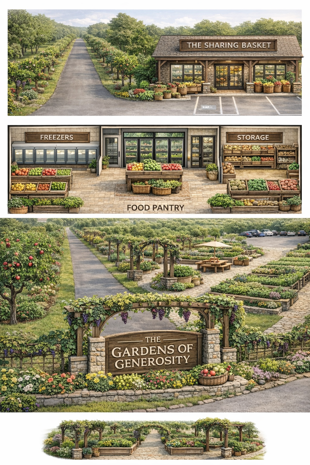 Memory Gardens Orchard will sit on the top of Hobbit Hill. The orchard will have plants planted in Memory of community Loved Ones. All produce from the orchard will be given to community through the program the Sharing Basket where each basket will state the memorial of that loved one where the produce was harvested .